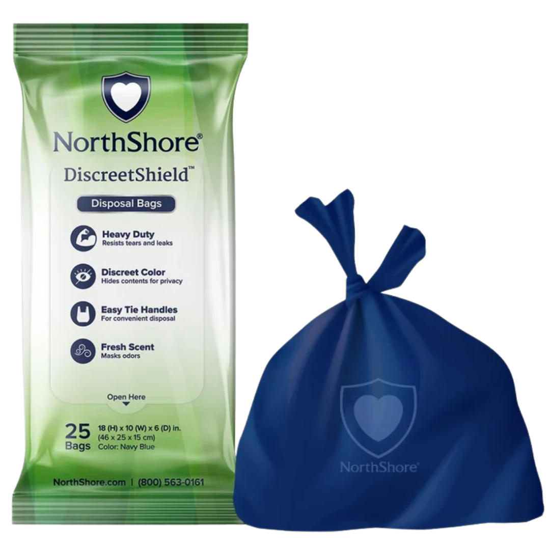 NorthShore DiscreetShield Disposable BagsNorthShore DiscreetShield Disposal Bags offer a hygienic, odor-blocking solution for disposing of used incontinence products with confidence and discretion. Compact and lightly scented, these easy-to-use bags seal in odors and fit discreetly in handbags, pockets, or care kits. |