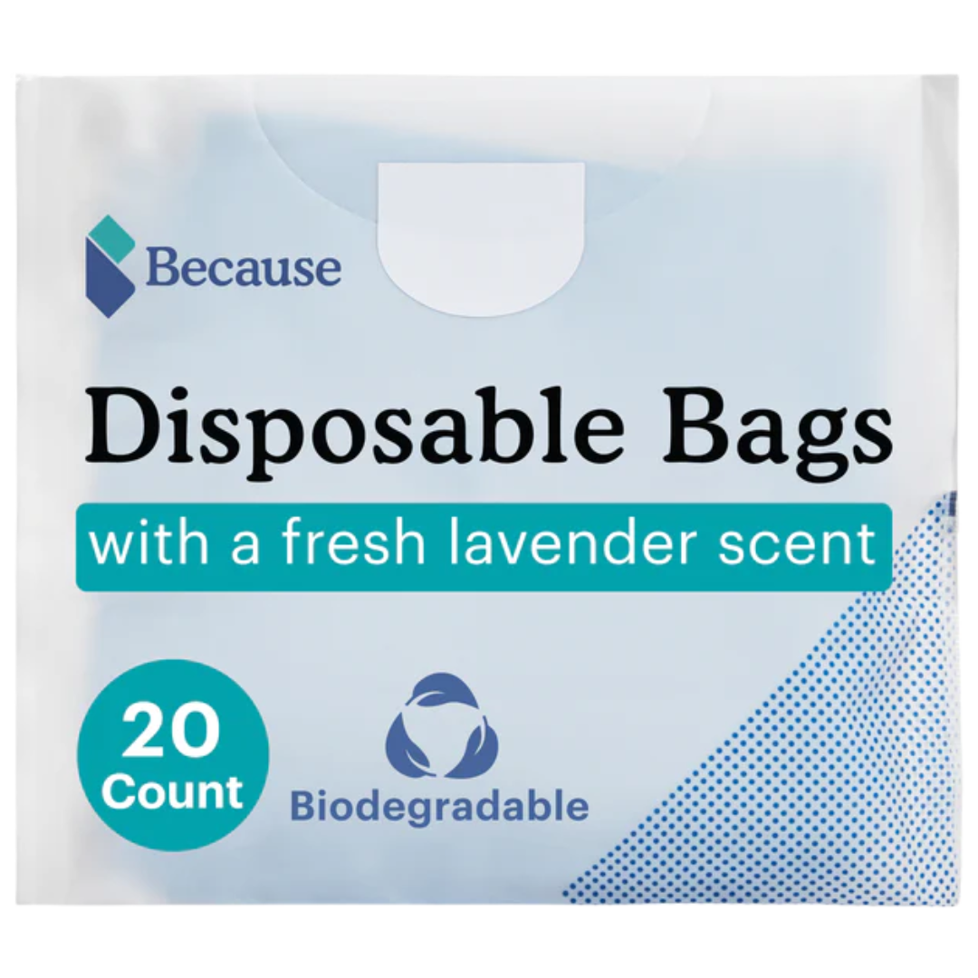 Because Biodegradable Scented BagsThe Because Biodegradable Scented Bags provide an easy and discreet way to dispose of incontinence products. These bags feature a fresh lavender scent that locks in odor and easy-to-tie handles for added discretion. They are also large enough to fit several used incontinence products. |